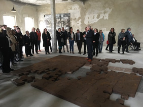Die Wanderausstellung „Kunst trotz(t) Ausgrenzung“ erteilt eine künstlerische Absage an Fremdenfeindlichkeit und Rechtspopulismus, an Ideologien von angeblicher Ungleichheit und Ungleichwertigkeit von Menschen. An dem Projekt der Diakonie Deutschland beteiligen sich Künstlerinnen und Künstler unterschiedlicher sozialer und kultureller Herkunft. Gemeinsam fordern sie den Betrachter dazu heraus, sich mit der Gestaltung einer offenen, vielfältigen und inklusiven Gesellschaft auseinanderzusetzen. Die Ausstellung wurde erstmals in der documenta-Halle in Kassel gezeigt, weitere Stationen waren Braunschweig, Stuttgart, Hannover und Berlin. Auch beim Kirchentag in Dortmund waren ausgewählte Exponate zu sehen. Am 27.Oktober wurde sie nun nach einem Gottesdienst in der Wormser Dreifaltigkeitskirche in der Gedenkstätte KZ Osthofen durch Wissenschafts- und Kulturminister Prof. Dr. Konrad Wolf in Anwesenheit von 6 Künstlerinnen und Künstlern eröffnet. Bis zum 15. Dezember ist die Ausstellung nun in der NS-Gedenkstätte KZ Osthofen (zu den üblichen Öffnungszeiten) und einigen Wormser Kirchen zu sehen. Die Ausstellung steht unter der Schirmherrschaft von Ministerpräsidentin Malu Dreyer.