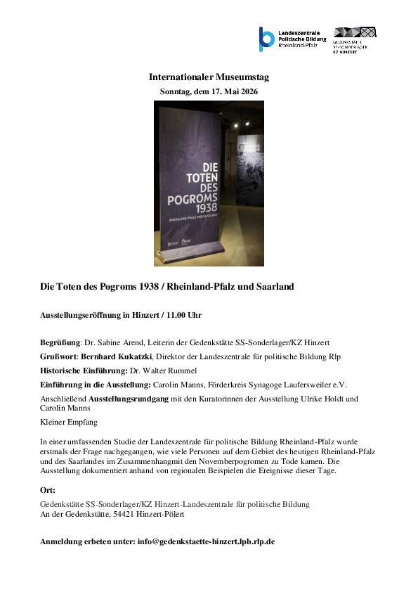 Wir bitten um Anmeldung bis 12.05.26 unter info@gedenkstaette-hinzert.lpb.rlp.de
